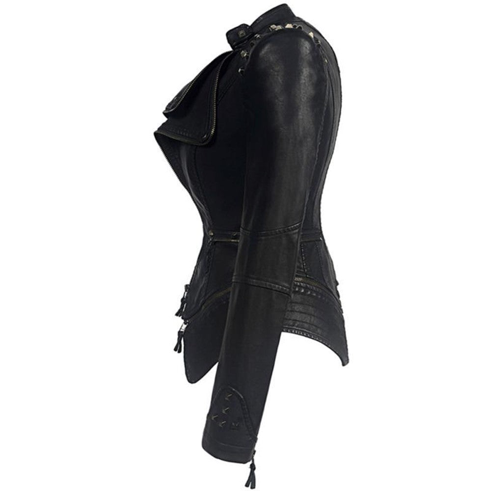 Slim-fit tuxedo mid-length leather jacket