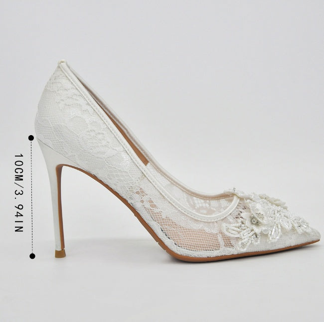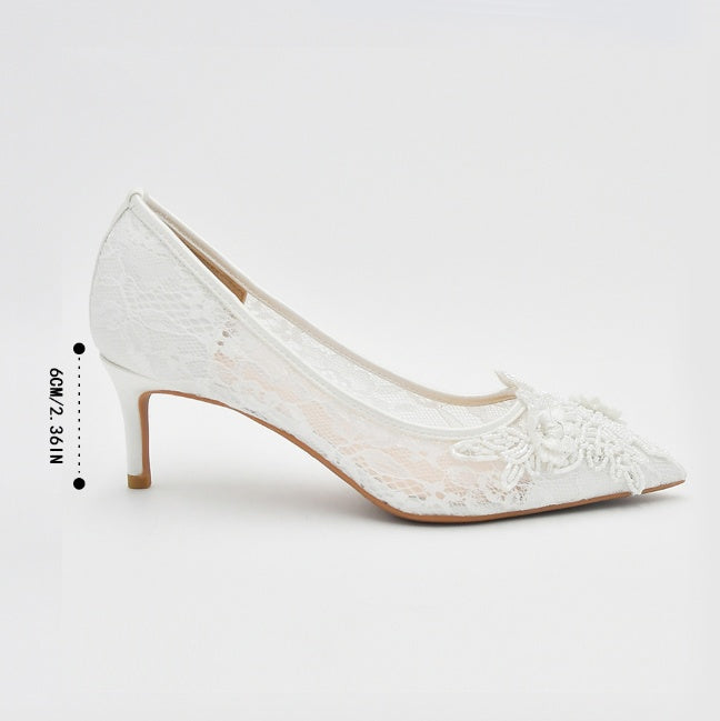 White Lace Flower Bride's Wedding Shoes